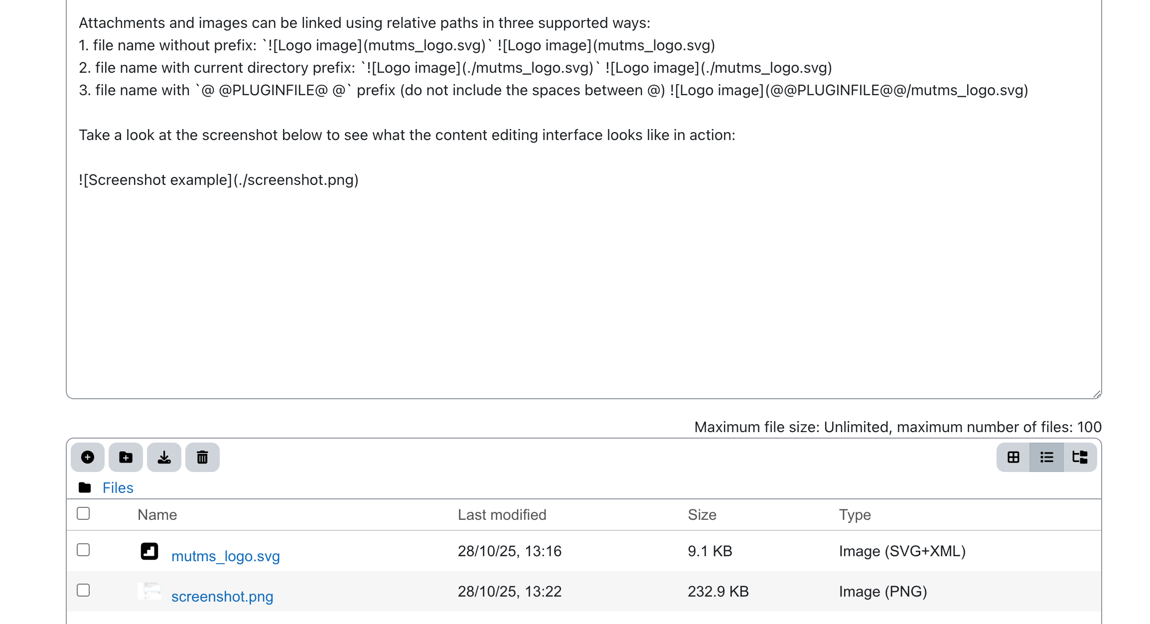 To create a fully self-contained book, you can add attachments and images directly to each Markdown content block. This allows all resources to stay bundled with the book, making it easier to share, archive, or reuse without external dependencies.